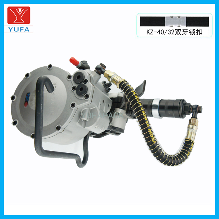 KZ-32/40氣動組合式鋼帶打包機一個機器完成整個打包的過程束緊、咬扣、切帶一體式。