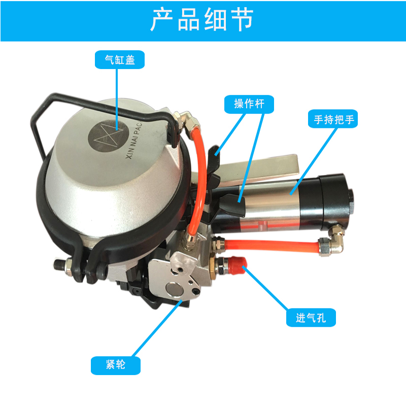 打包機可手持式操作,也可通過平衡器吊掛,在可旋轉,可移動的橫梁上、上下操作,操作簡單快捷2、使用打包機時,氣源要裝過濾器,保證氣體純凈無雜質。氣源壓力要穩(wěn)定在0.4-0.6Mpa之間 3、氣管的最大工作長度為10米,理想長度在5米內。 4、打包機的應定期添加潤滑油保持機器潤滑。